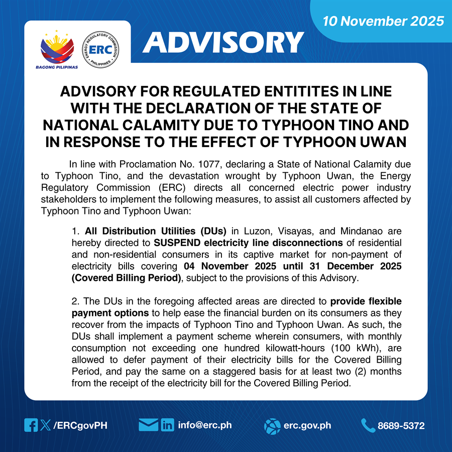 The following announcements are posted in compliance with requirements of the Energy Regulatory Commission (ERC), the Department of Energy (DOE), or other government agencies.